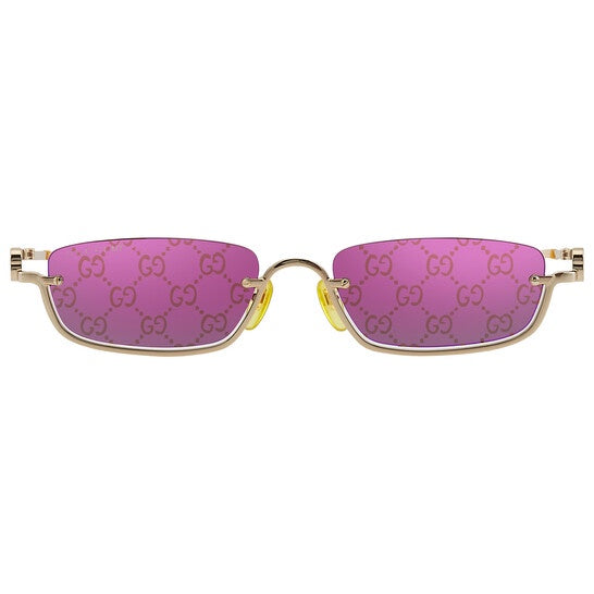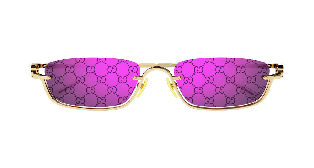 The GG1278S‑005 55 by Gucci presents a refined rectangular silhouette in a polished gold‑metal frame (colour code 005) paired with brown/violet mirror lenses. This unisex design features a lens width...